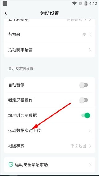 4、你还能在设置里找到运动设置,打开运动数据实时上传功能,这样就能记录跑步数据了。