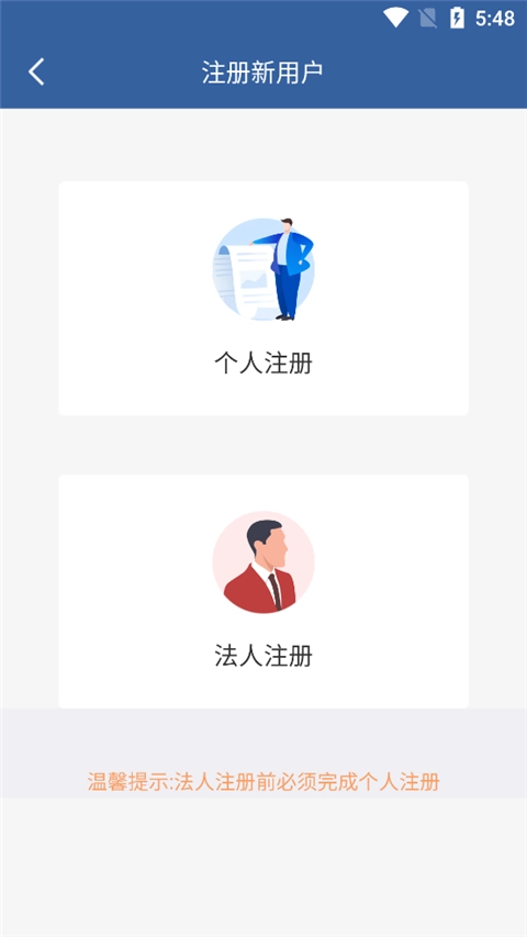 2、点击个人注册;