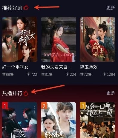 1、打开纵横短剧App,进入首页可以看到推荐的好剧和热播排行榜