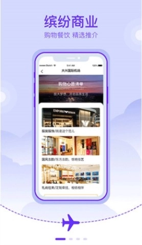 2、旅客可实时查询餐饮与购物信息,享受丰富的机场商业体验。
