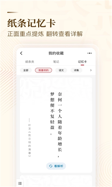 阅读完成后系统会自动生成一张记忆卡,这张记忆卡会精准提炼内容核心,帮助用户加深记忆;同时支持给记忆卡添加标签进行分类整理,让已学习的素材类型清晰呈现。
