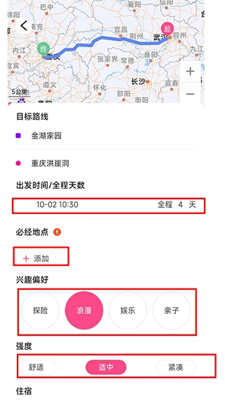 3、在设置行程时,根据自己的要求进行定制,填写完成后,点击【生成AI路线】;