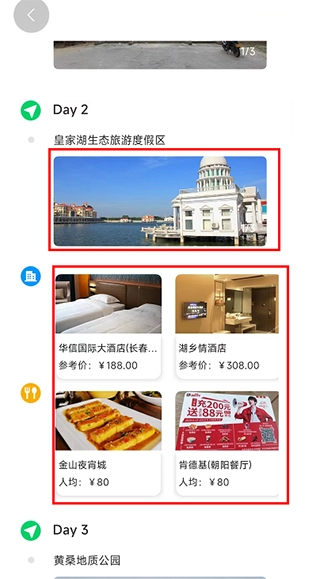4、接下来,系统会为您生成专属的旅游行程安排以及酒店住宿建议。