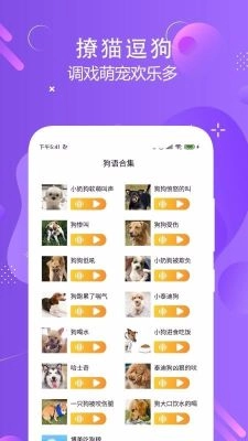 多样动物声音库:丰富多样的猫、狗叫声样本,涵盖各种情境下的表达,如玩耍、求关注、示警等,使翻译更加生动逼真。