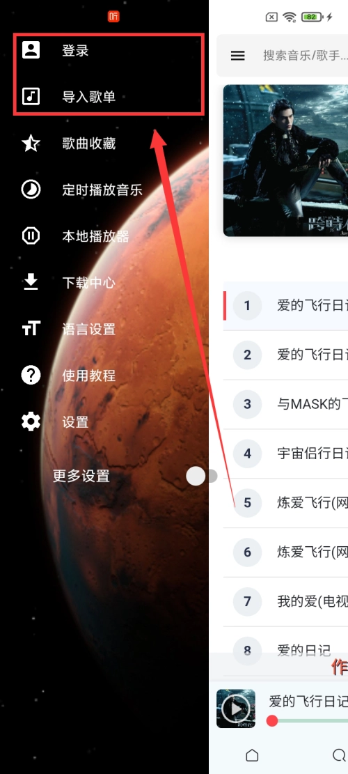 2、先登录或者导入歌单;