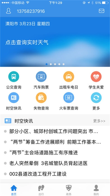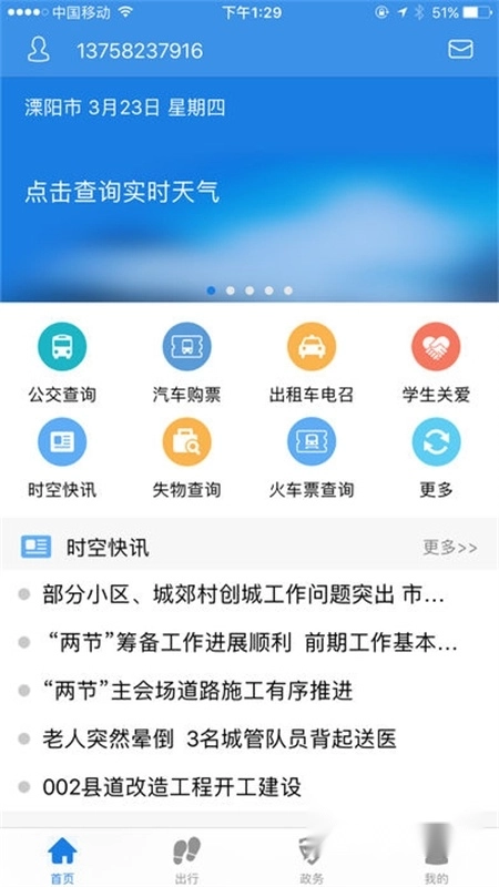 3、为用户提供出租车电召、实时公交、长途客运、学生关爱以及时事新闻等便民服务信息。