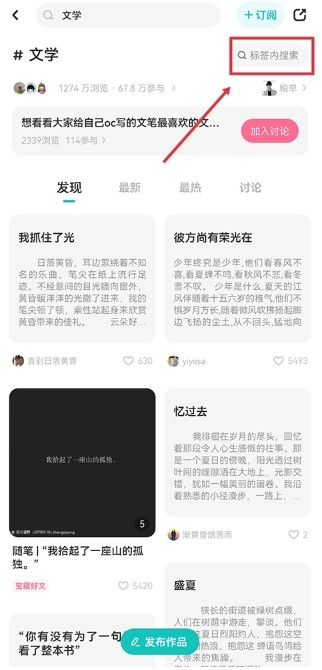 3、进入后点击右上角的标签内搜索。