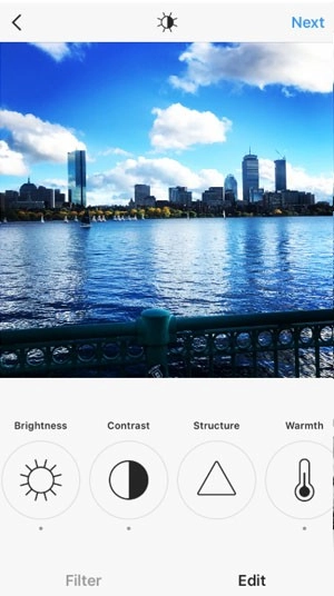 3.接下来我们可以使用两种工具来处理图像——“过滤”和“编辑”。Instagram会自动向您显示滤镜,我们可以单击任意滤镜以将其应用于当前图像。此外,我们也可以进行滤镜的调节,双击滤镜并将光标向左移动以减小过滤器的强度。