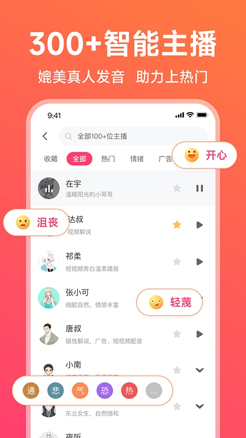 专业的配音工具,一键轻松为用户提供文字转语音,更好完成配音工作。