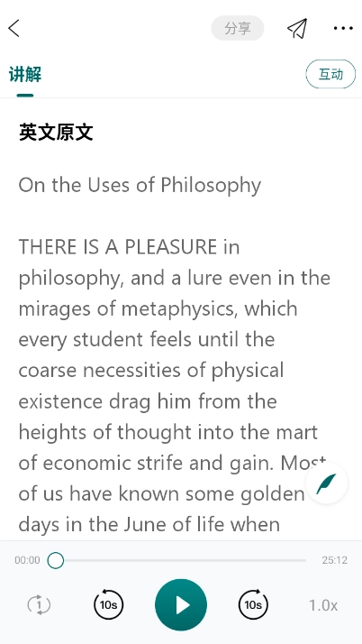 3、选择一节课程进入,可以对照原文边听边看。