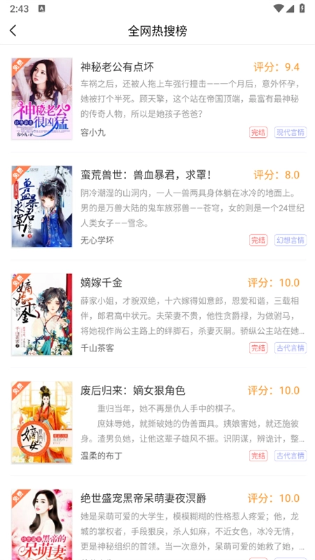 分类明确:小说依据不同类型做了细致分类,便于用户迅速定位自己喜爱的作品。