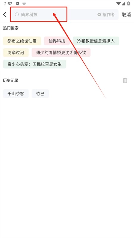 1、先打开相关软件,接着在搜索界面输入关键词来查找小说。