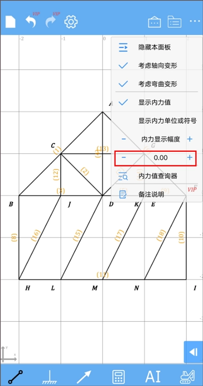 说明:选择某个节点或杆件时的触摸范围,数值越高,节点杆件就越容易被选中。