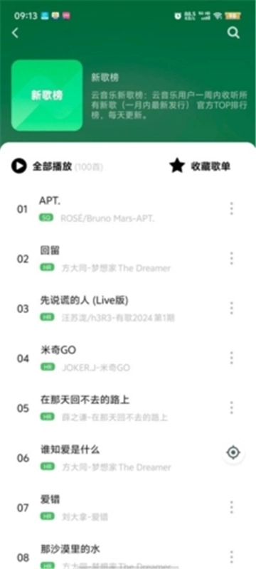 2、软件提供了海量热门音乐资源,对于不知道该听什么歌曲的用户来说,可以通过随机播放歌单发现新音乐,增添乐趣。