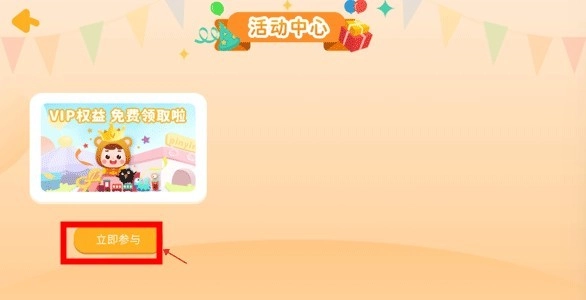 在活动中心里,找到可免费领取VIP权益的活动,点击“立即参与”按钮就能进入活动页面。