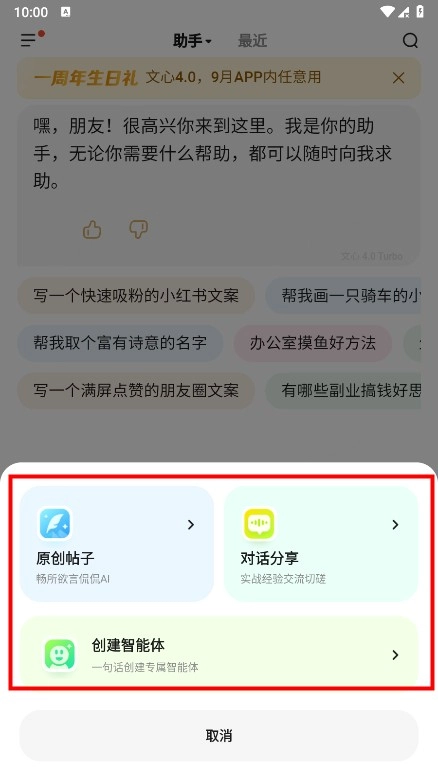 在首页,我们能看到写作帮手、拍照问答、新闻订阅、图片创作等快捷功能入口,若有需求,可直接点击使用。