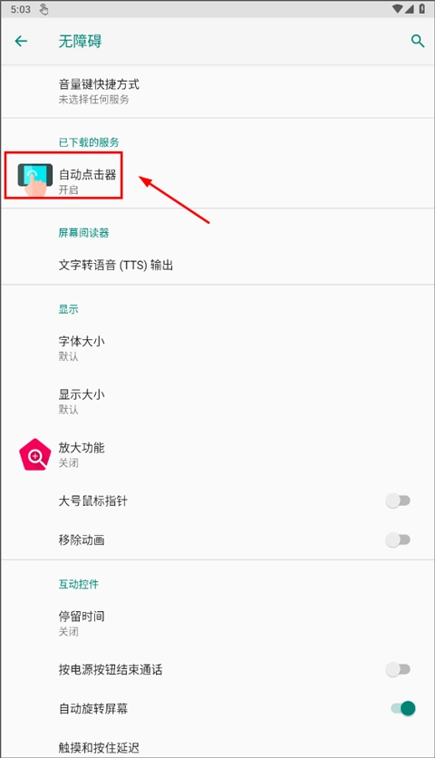 5、找到“自动点击器”功能,它默认处于关闭状态,需要手动开启。