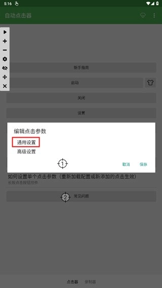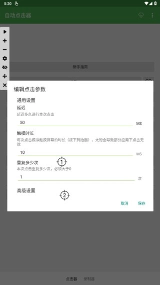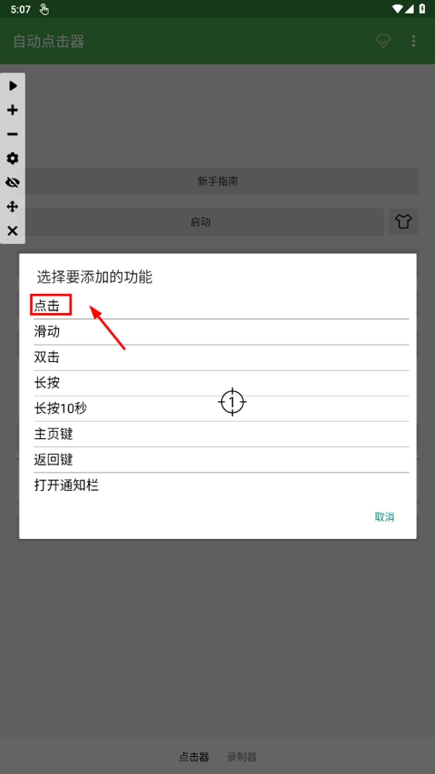 1、打开自动连点器,然后长按屏幕中间的位置点。