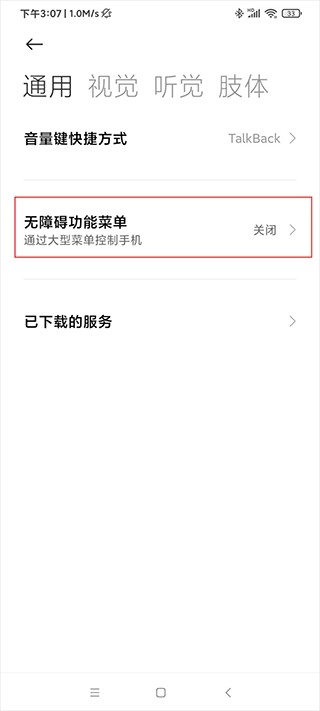 2、点击“辅助功能权限”后,找到“无障碍功能菜单”,该功能默认处于关闭状态,需手动开启。