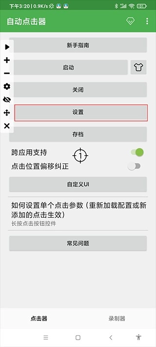 1、打开自动连点器主界面后,点击设置按钮进入设置页面。