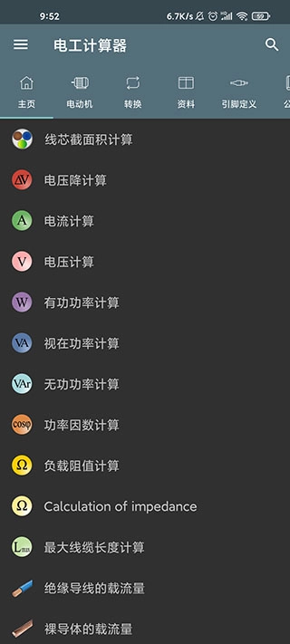 1.这是一款十分实用的电工计算工具,各类计算公式都很完备。
