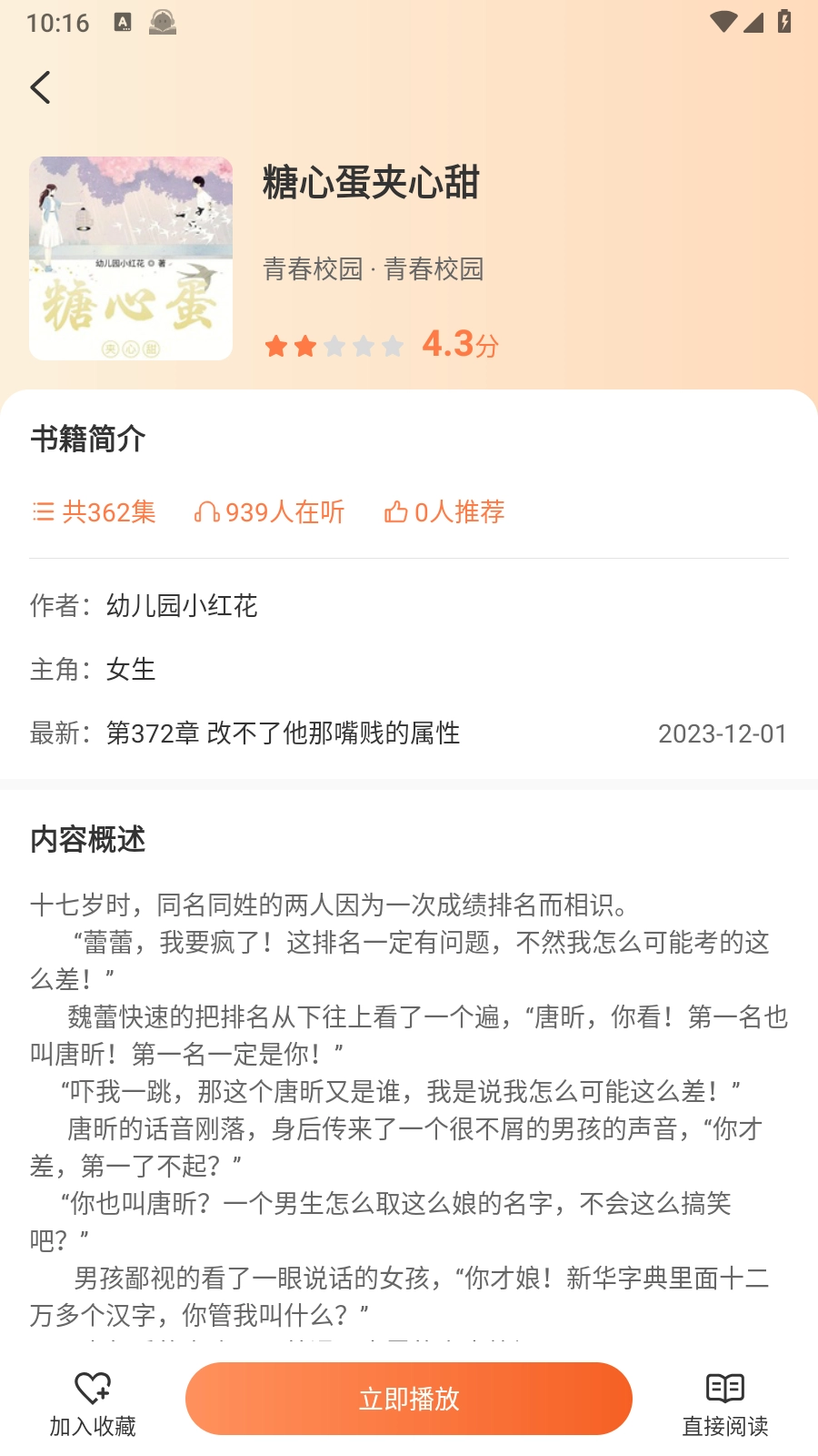 3.选择想要收听的小说,进入播放页面