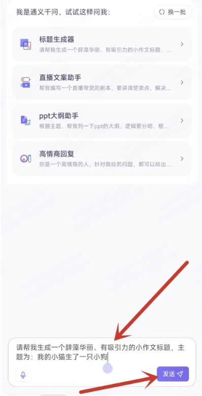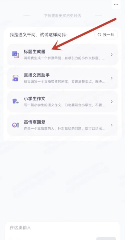 1、打开通义千问,在助手列表右侧,点击换一批。