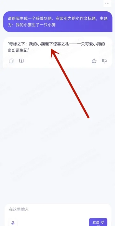 4、点击发送后,助手会依据小作文的内容自动生成标题,并且支持多次尝试,以更换不同的小作文标题。