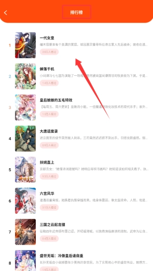 1、启动枫芽漫画后,在首页点击"榜单排行"功能,查看各类漫画人气排名。