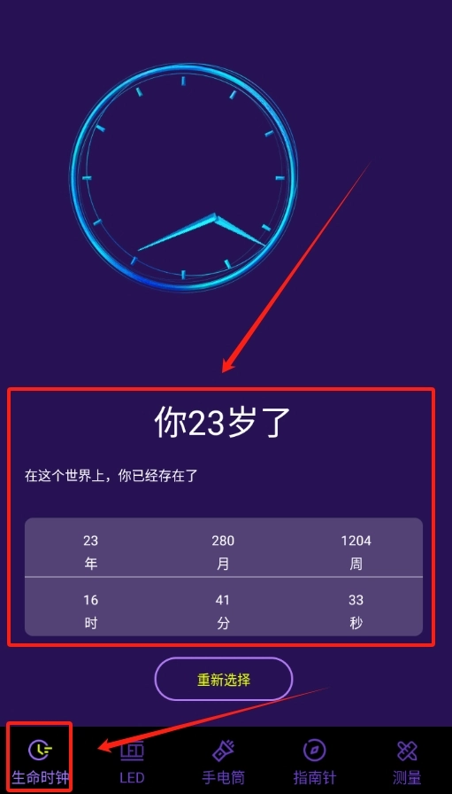 1、生命时钟功能记录生命倒计时,让用户真切感受时间跃动,从而珍惜每一刻时光。
