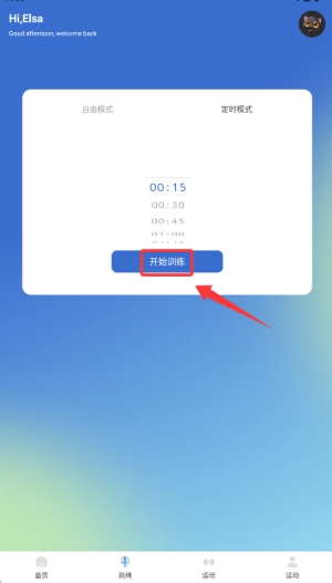 1、启动应用后,在首页选择"跳绳训练"功能进入运动准备页面。