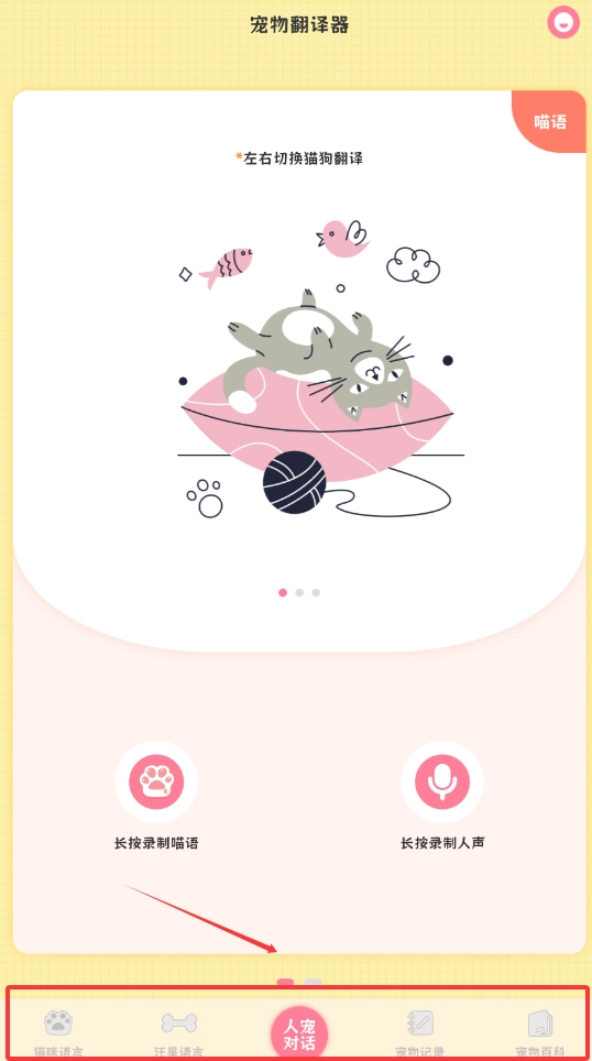 1、进入首页,按照选项选择需要录音的按钮,即可开始录音,放给宠物听即可。