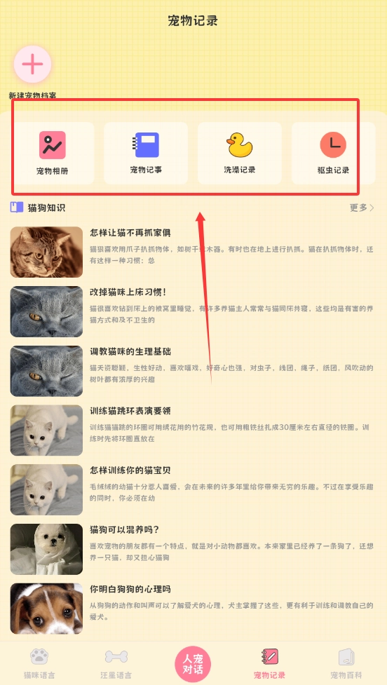 2、进入宠物记录界面,就能记录宠物的点点滴滴,日后回顾起来也会很有趣呢。