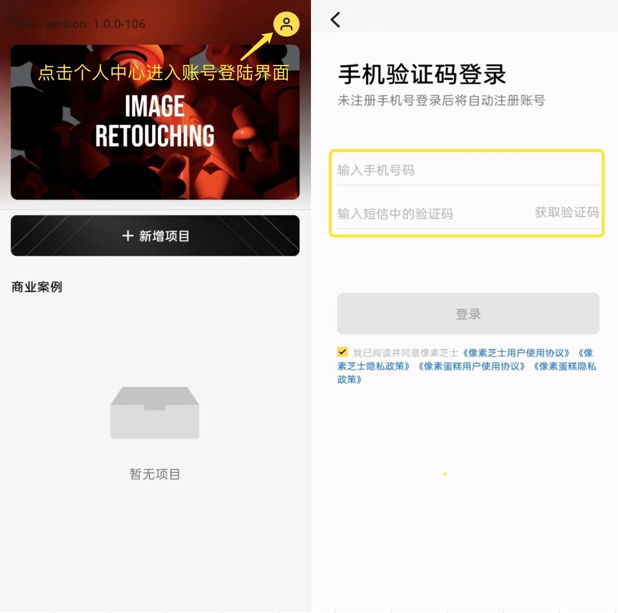 若用户在上传图片时遇到失败的情况,可点击右上角的「个人中心」图标进入账号登录界面,通过手机验证码完成账号登录,即可开启极速发布的流程。