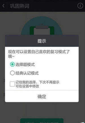 5、在背了一些词汇之后,主页面可以选择巩固熟词。有选择题和经典记忆模式可以选择。