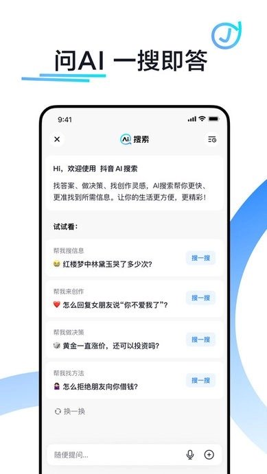 抖音搜索「AI搜」功能已全新上线!更丝滑快捷的搜索体验,尽在抖音搜索。
