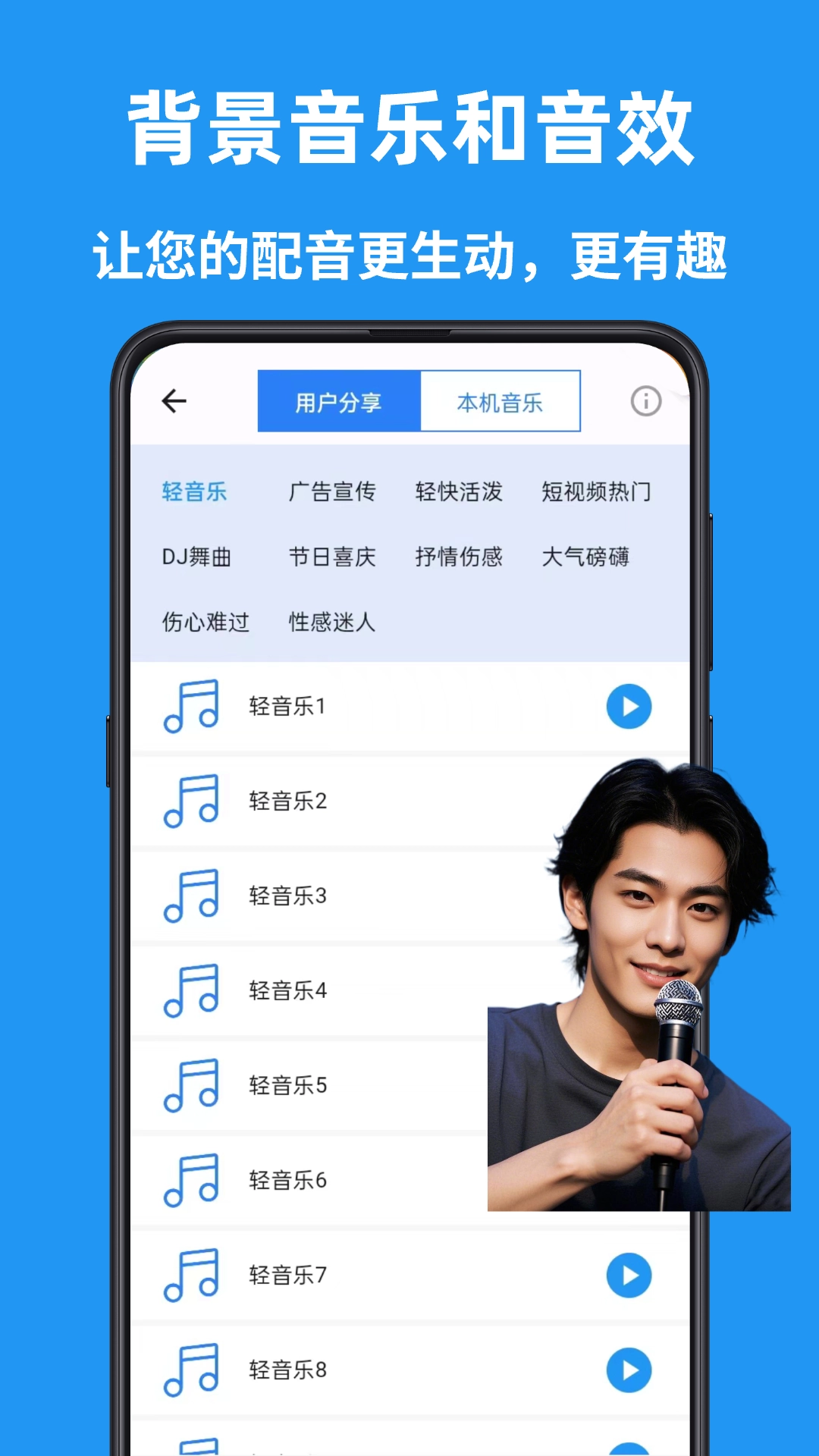 1.随时随地试听各种主播的语音,涵盖多种声音类型