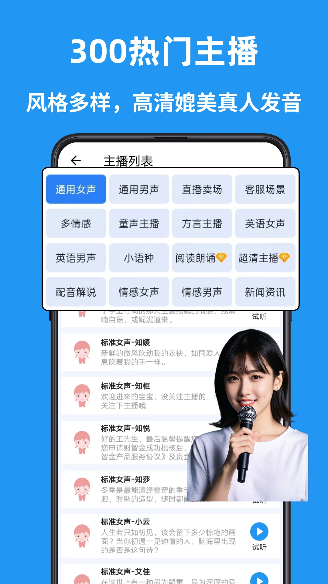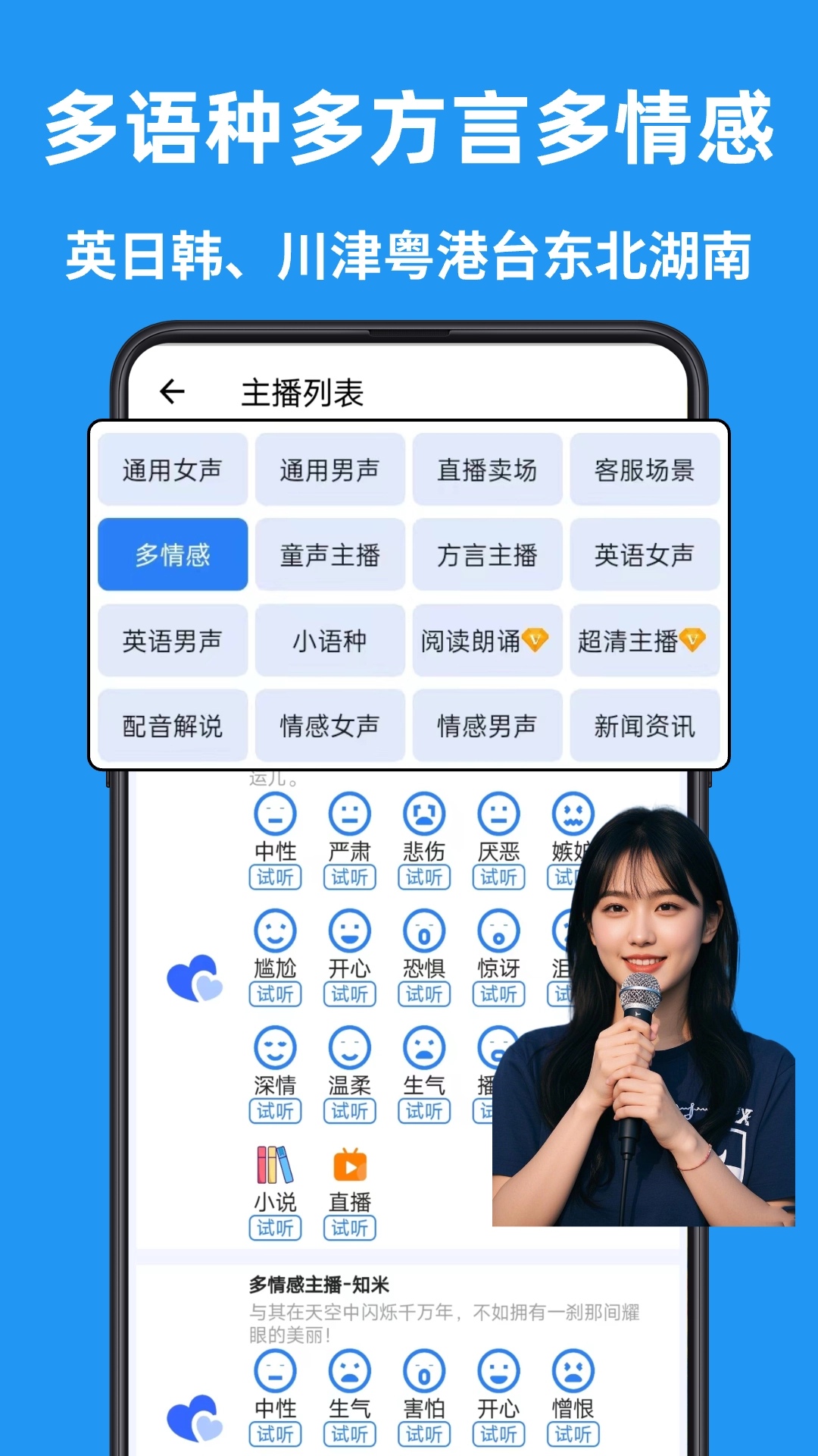 1.海量的主播语音音色自由选择,方便大家选择配音