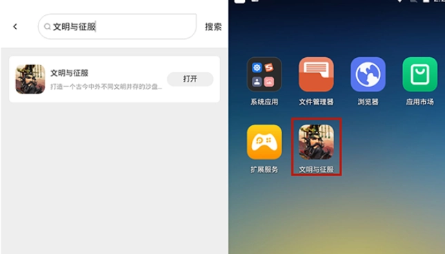 3、以《文明与征服》为例,你可以选择设备进入后找到应用市场,搜索“文明与征服”。