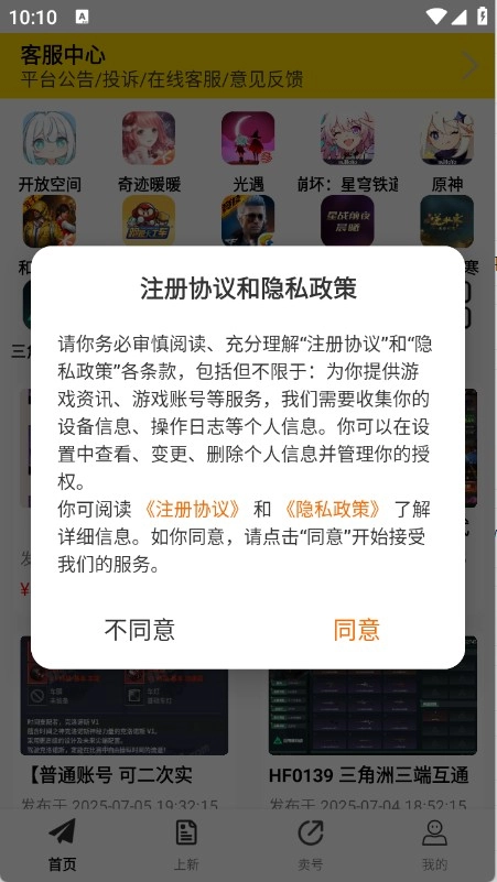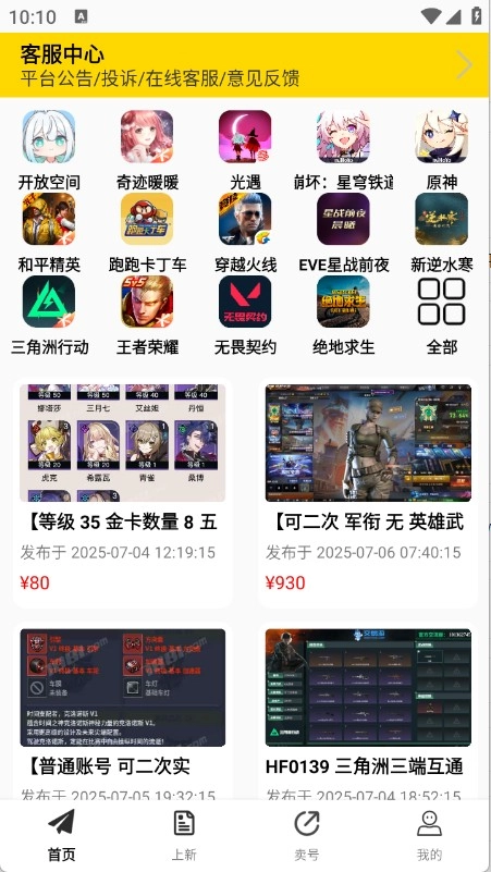 2.进入到首页汇集了很多的游戏账号
