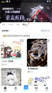 2、首先,作为一个游戏社区,库街区为用户提供最新的游戏资讯和动态,方便用户快速获取游戏关键信息,如提供【推荐】、【讨论区】、【攻略】、【同人】等不同的内容版块。