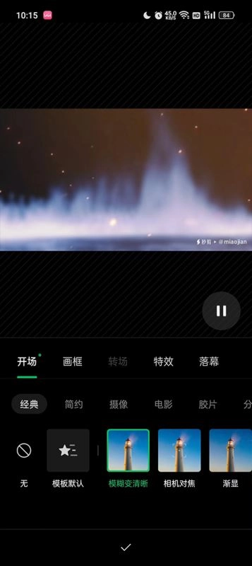 当你觉得视频过于单调了,没有让人眼前一亮的惊喜感,可以选择添加开场特效,点击下方的开场特效进行添加,有各种特效可以选择;