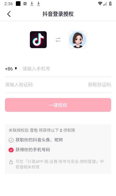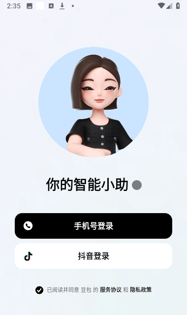 1、进入豆泡AI后需要进行登录操作,因为它隶属于字节跳动,所以用户既可以选择通过抖音账号登录,也可以使用手机号码完成登录。