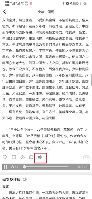 1、打开古文岛,在文章中点击喇叭