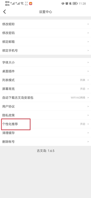 2、点击个性化推荐
