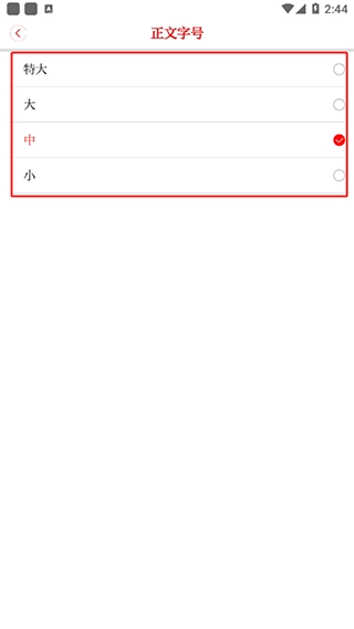 3、进入设置界面,点击【正文字号】。