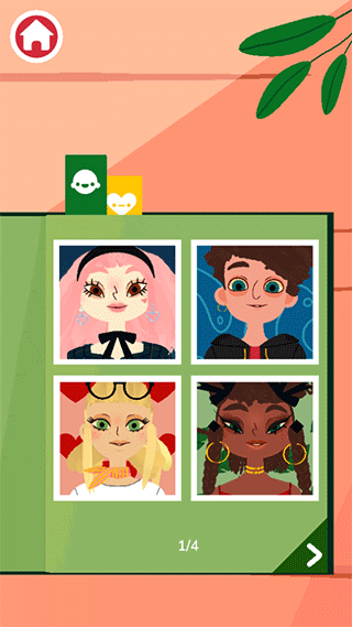 选择一个背景,在您的角色摆出各种姿势时拍出漂亮的照片!还可以将角色照片保存在相册中,稍后回来再为其进行更多造型。