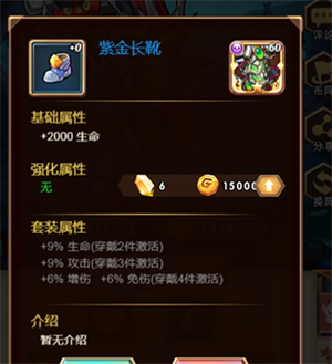 先说下装备,装备分为6种品质,同时,装备具有套装属性,穿戴的同类套装属性的装备越多,可激活的属性越多,所以穿戴前一定不要忘记看是是否穿戴同种类装备。装备的培养材料为强化石和附魔石,只有高级装备才可以附魔(紫,橙,红三类装备)。
