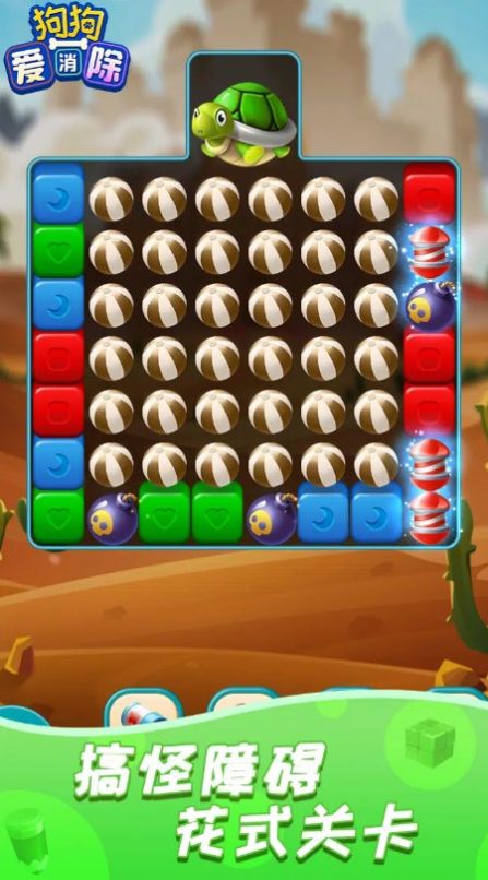 狗狗爱消除的玩具炸弹模式,融入了各类趣味消除玩法。在这里,玩家既能畅享经典消除游戏的乐趣,又有丰富多样的闯关玩法等你挑战。游戏内道具种类繁多,玩家借助这些道具,能轻松斩获高分,持续解锁全新内容。要是玩家在游戏时遭遇关卡难题,随时都能分享给好友,邀请他们一同助力通关。