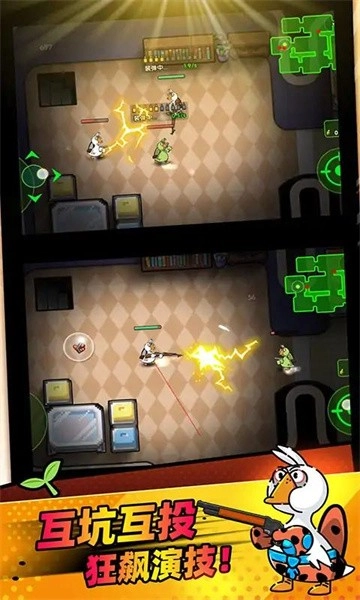 1、经典大逃杀玩法紧张刺激,20只鸭鹅在同一赛场展开较量,玩家需收集各类资源来升级强化装备,最终成为唯一存活到最后的赢家,以此证明自身的强劲实力。